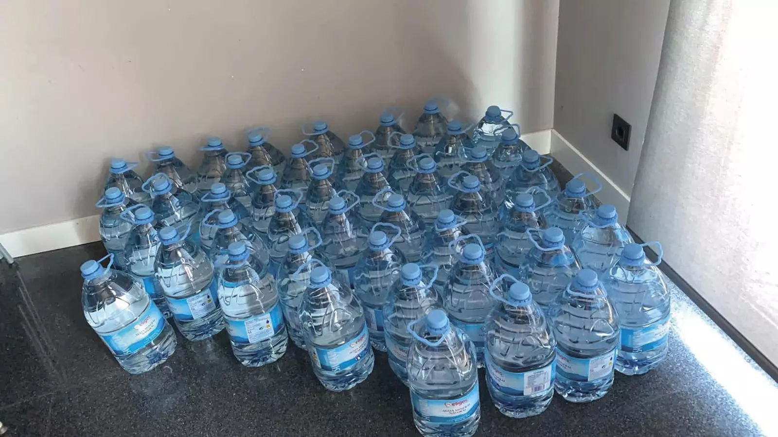 Los vecinos pasan a recoger las garrafas de agua que están en las dependencias municipales.