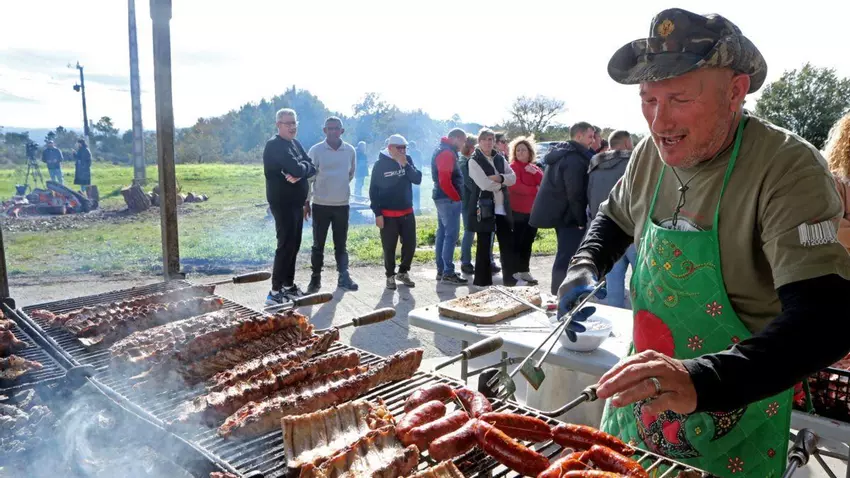 Moncho Piñeiro busca a Marina Álvarez y la coloca frente a la cámara. Marina sonríe y comenta sobre los preparativos para dejar todo a punto, desde picar la leña, acomodar mesas o aderezar la carne. Acumulan pocas horas de sueño, la ocasión así lo demanda. Los cerca de 500 comensales transitan dentro y fuera de la carpa levantada para el encuentro.
