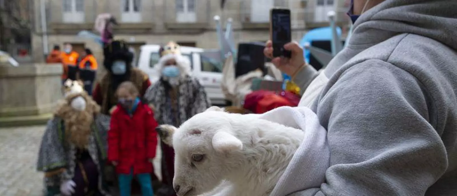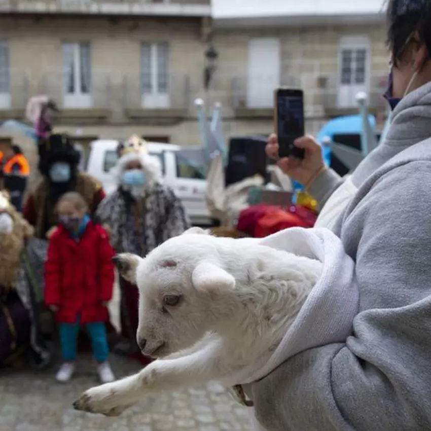 La visita de SSMM los Reyes Magos a la localidad de O Ribeiro sorprendió a los niños y niñas, que saludaban desde sus balcones.