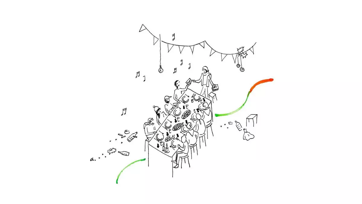 Sucedió que el día antes de Nochebuena el camello preguntó quién quería cenar allí. Yo me anoté. Éramos nueve. `Todos aquí a las once´, dijo el fulano. Cuando entré, el piso estaba engalanado con banderitas, velas y villancicos. Créeme, parecía una bacanal romana. Langostinos, cordero, toda clase de dulces, incluso turrón duro. Nos fuimos sentando a lo largo de una mesa. Sorprendido vi que al lado de cada plato había una bolsita, ya sabes.