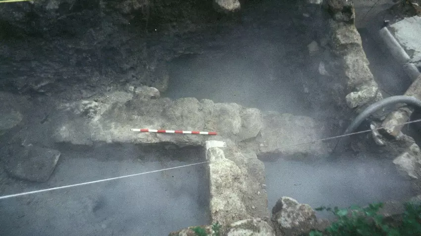 O enclave das Burgas foi obxecto de varias escavacións arqueolóxicas, intervencións que iremos vendo en sucesivos escritos, polo que na actualidade contamos cunha información bastante completa do lugar. A primeira escavación foi previa á remodelación que realizou o Concello de Ourense entre a Burga de Arriba e a de Abaixo, obra do arquitecto Xosé Manuel Casabella. Centrouse pois, no espazo existente entre as dúas fontes principais e foi dirixida polo arqueólogo A. Seara Carballo nos anos 1987 e 1988. Os resultados foron obxecto de varias publicacións. Quizais a máis difundida sexa “Las Burgas y los orígenes de Orense”, artigo publicado na coñecida “Revista de Arqueología” en 1989 polo citado director xunto co investigador e restaurador arqueolóxico C. Fernández Ibáñez. Como curiosidade, contarlles que o estrato arqueolóxico máis moderno, un recheo que colmataba o lugar, contiña numerosos fragmentos de cerámicas romanas e medievais. Con toda certeza foi traído no s. XIX doutros lugares -Pompeo ou Posío- para nivelar este entorno das Burgas, xa que orixinalmente era o fondo do leito -o talweg- do regato do mesmo nome, cun val hoxe colmatado e substituído por una condución pétrea. Transversalmente este val, esencial para a configuración histórica do urbanismo ourensán, practicamente chegaba dende a catedral ara a abadía da Trindade e, ao longo, dende as ladeiras do Montealegre ata o río Barbaña, onde desembocaba recollendo as escorrentas e as augas das Burgas. Volvendo sobre os niveis máis antigos, o primeiro asentamento romano descuberto durante estas escavacións foi datado entre mediados e finais do s. I d. C. e o último terzo do III. Desta etapa romana forma parte un muro de cachotería exhumado na parte traseira da Burga de Abaixo a cinco metros de profundidade e baixo a dita condución, o que en gran medida dificultou a escavación. Pero asociados cos restos desta edificación apareceron fragmentos de pezas de mosaico -teselas- e tixolos de entalle, que habitualmente forman parte de sistemas de calefacción romanos -hipocaustos-, ademais de cerámica fina de mesa -sixilata- e abundante cerámica doméstica.