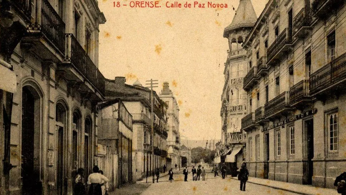Fijaos bien en el edificio de Felipe Santiago, el más alto en la acera izquierda, que hoy tiene el bajo cerrado pero espera una nueva tienda de material deportivo, ¿no os falta nada antes de él?... Sí, aún no existía el Teatro Losada, que hoy es Zara, pero es que del otro lado tampoco había nada. El edificio que hoy alberga Cortefiel no existía y, lo mejor, ¿cuál es el siguiente edificio?… ¡La subdelegación de Defensa! (recién inaugurada en ese momento 1908). ¿Cuántos edificios faltan en el medio? Pues en la otra acera, más de lo mismo. A continuación del hotel Miño, para encontrar un edificio de más de dos plantas había que irse casi, también enfrente del edificio de la subdelegación todo el resto, fincas y algún privilegiado chalet… Eso era la calle del Paseo en 1908.