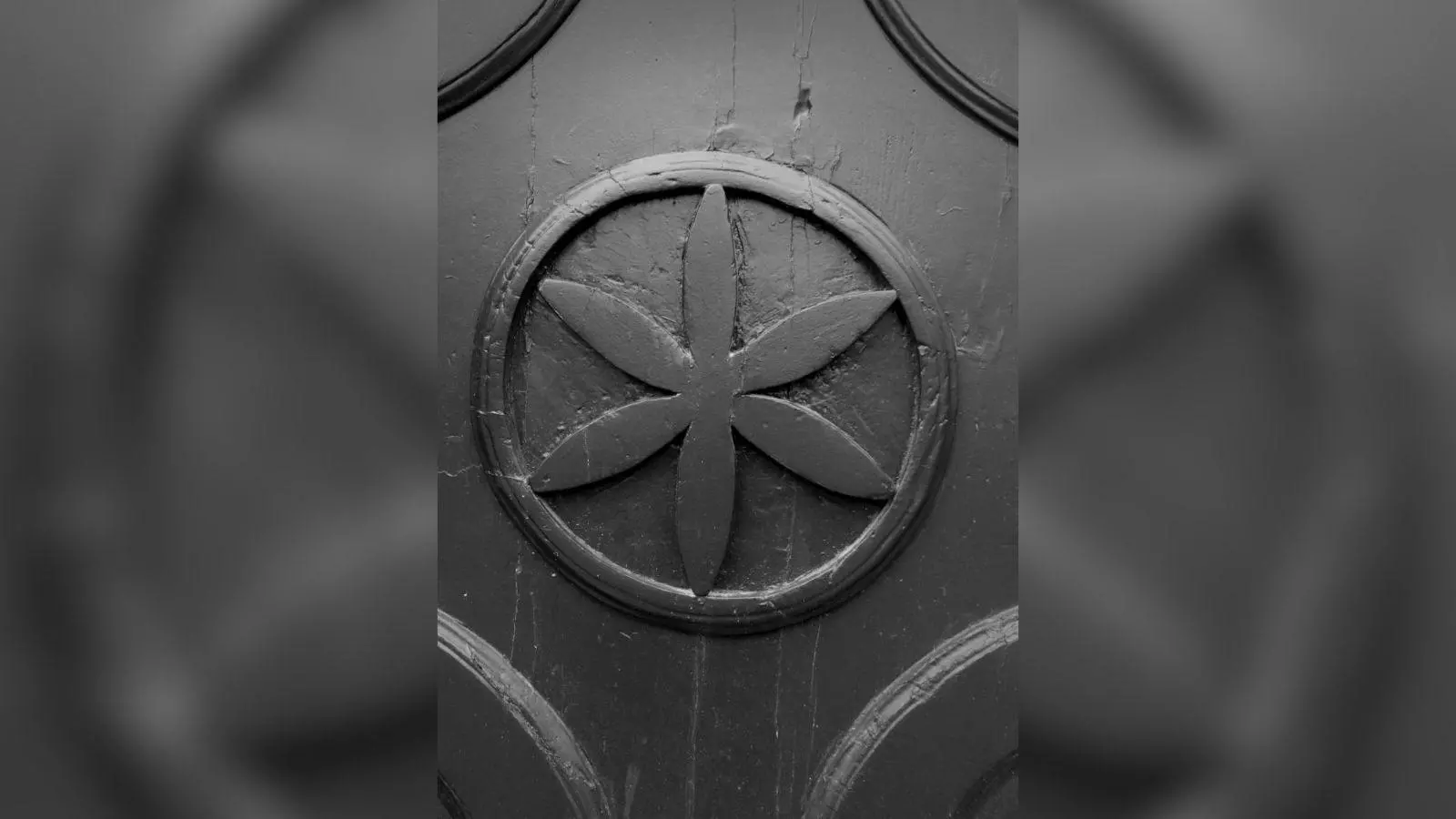 En cada puerta está grabada dos veces esta flor de seis pétalos, un motivo geométrico antiquísimo. Seis pétalos como las seis direcciones del espacio, el orden natural de las cosas.