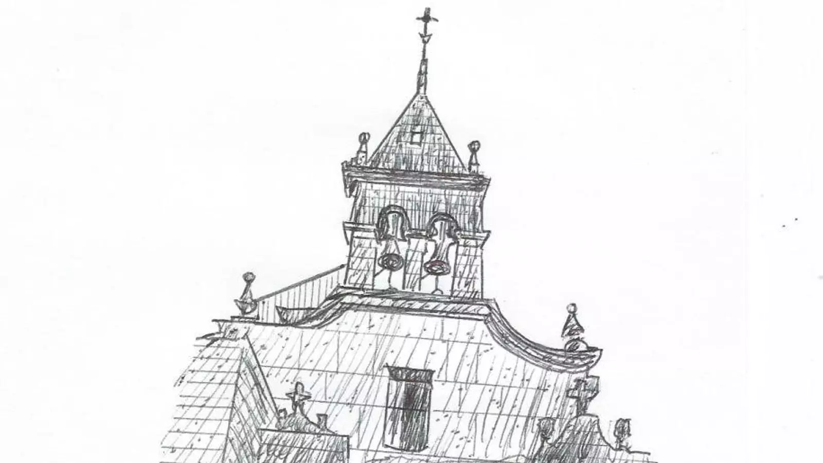 Accédese á alta espadana- campanario do templo a través dunha escaleira exterior protexida por unha varanda metálica, segundo tento amosar no debuxo que acompaño; a mesma o forma dous corpos perforados por sensos arcos de medio punto no que se aloxan as campás; da remate ó mesmo un alto frontón triangular tamén perforado decorado mediante pináculos de bola situados a ambos lados; por riba do mesmo érguese un frontón triangular tamén aberto coroado por unha cruz de ferro que soporta un cataventos ca figura dun galo cataventos, indicador, segundo a súa orientación, o tempo que acontecerá nas vindeiras horas.