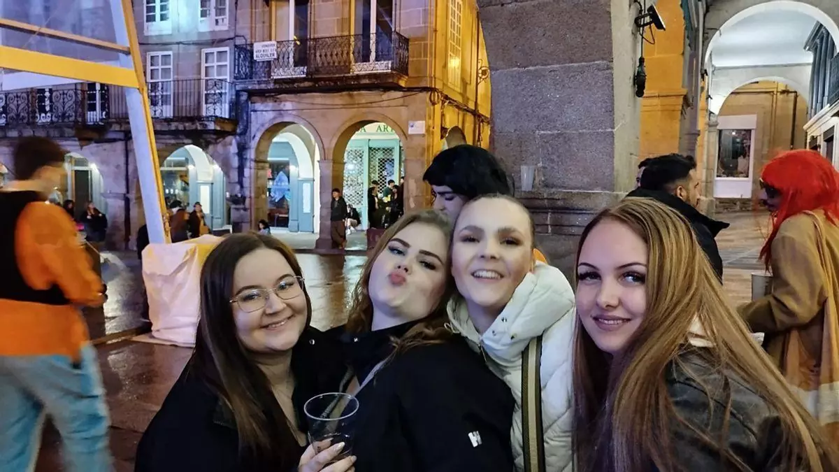 Un grupo de cinco jóvenes finlandesas discutieron hace semanas de donde pasar sus vacaciones y acordaron que lo que más les apetecía era recorrer los más de 3.000 kilómetros que separan Helsinki de Ourense y descubrir el Entroido. “Nos debatimos entre ir a Venecia o venir a Ourense, pero la segunda opción nos llamó más la atención”, aseguró una de las visitantes, que resaltaron que “está siendo una experiencia increíble”.