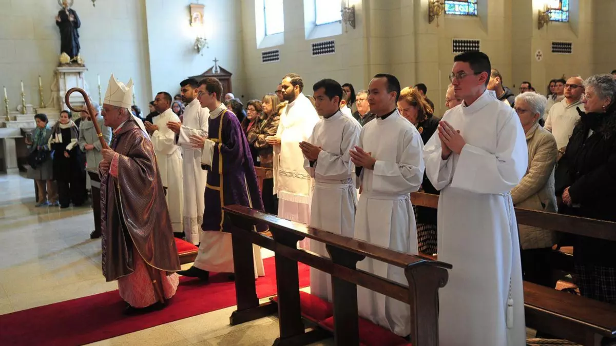La capilla del Seminario Mayor Divino Maestro acogió el sábado la ceremonia de institución de nuevos lectores y acólitos. En un acto presidido por el Obispo, Leonardo Lemos Montanet, cinco seminaristas reciben los ministerios laicales, el rito de paso decisivo e irreversible que marca la recta final hacia el sacerdocio.