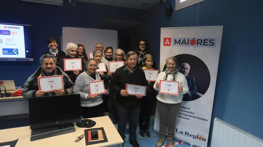 La capacitación digital que forma parte del programa impulsado por La Región “A Maiores” que se desarrolla en el Concello de Celanova concluyó ayer. En el Aula Cemit, sede desde el pasado lunes de dicha capacitación, los once participantes del grupo matutino recibieron sus correspondientes diplomas tras haber cursado este programa de diez horas de duración. Paola Pérez, representante de La Región y coordinadora del programa, felicitó a los recién graduados por su participación e interés y destacó la importancia de los conocimientos adquiridos.