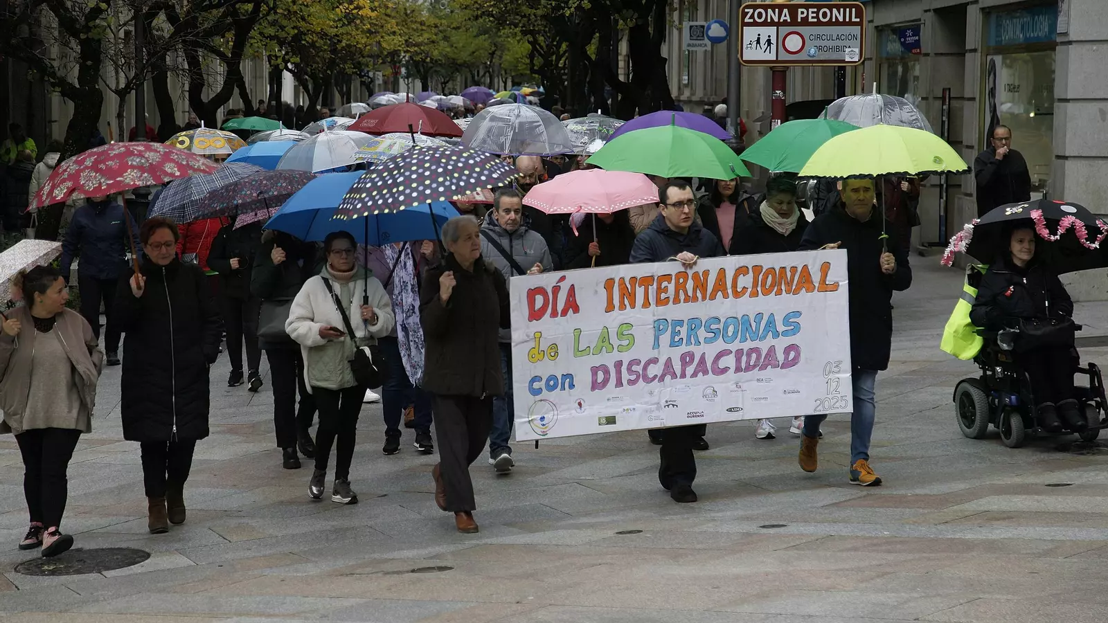 Catorce asociaciones de la provincia de Ourense que representan a diferentes colectivos organizaron una movilización para reivindicar el Día Internacional de las Personas con Discapacidad