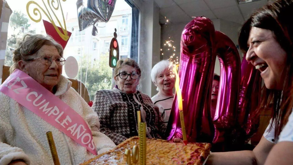 Crisanta Carnero naceu o 5 de febreiro de 1925, e onte -cen anos despois- celebrou o seu aniversario no centro de día A Ponte, na compañía de quen xa considera “amigos e familia”.