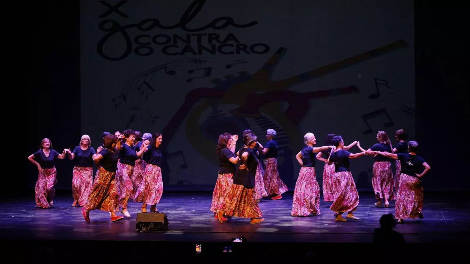 Son las 20,30 horas. La Real Banda de Gaitas de la Diputación de Ourense comienza su ejecución flanqueando butacas. Los aplausos tras su primer número son una frontera de bienvenida. Cada uno de los presentes ha contribuido a concretar la función de la noche. Fátima Pego y Lucía Rodríguez, conductoras del espacio, agradecen a los asistentes. La solidaridad ourensana desconoce barreras para manifestarse con puntualidad donde es más útil. Diez años de galas contra el cáncer en la ciudad de As Burgas son una multitud de retos vencidos. El sonido de las gaitas va en despedida para darle entrada a los demás artistas. Pego y Rodríguez, cronometradas en escalas, aparecerán otras cuatro veces antes de la clausura. El grupo Dantzari universaliza la sala con el baile. Confluyen ritmos como ovaciones. La humorista Marta Doviro entra al escenario. Las risas son la medicina más efectiva. Le corresponde el turno a la agrupación Castro Floxo. La tradición musical y danzaria gallega es ineludible.