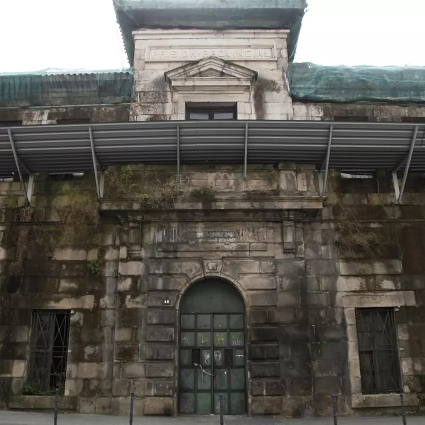 La antigua cárcel muestra un aspecto cada vez más deteriorado, con innumerables elementos de protección y seguridad para velar por los viandantes, desde redes en la fachada a unas vallas metálicas para amparar los posibles cascotes que caigan a la acera.