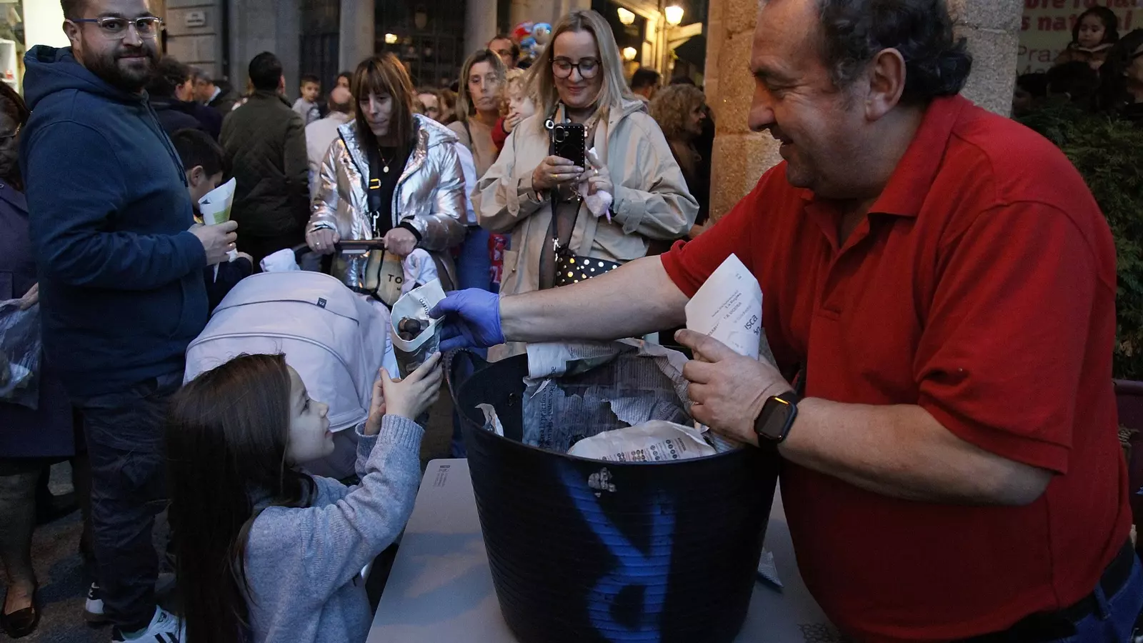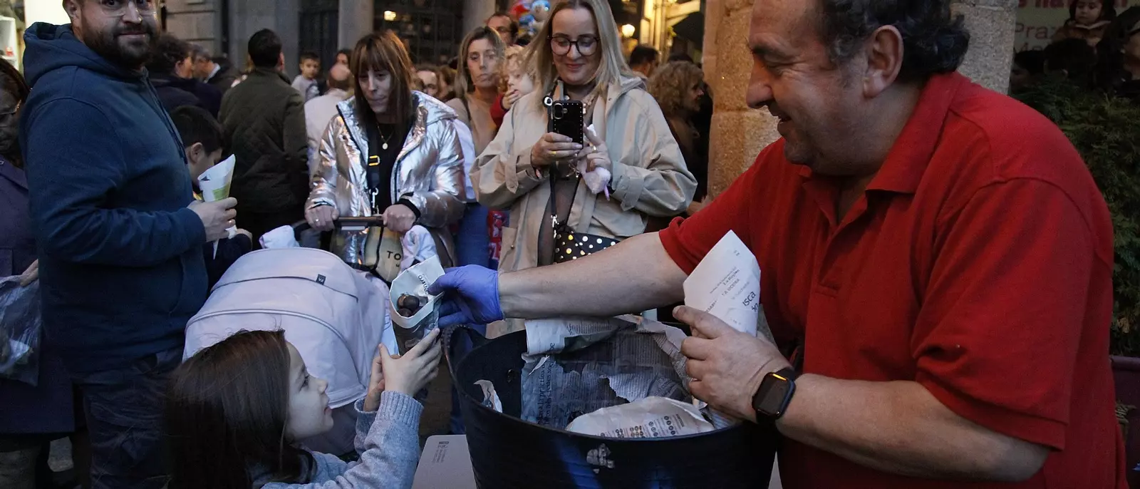 En los alrededores de la Alameda el olor a castaña asada era dominante junto al de las brasas por los chorizos del bollo, hasta ahí aparecieron los gigantes y cabezudos para bailar e interactuar con los presentes.