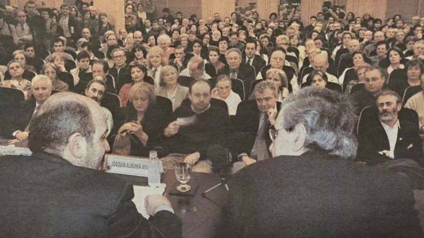 Primeros años clandestinos; ingenuos gritos de OTAN no. Su día más hermoso, allá en octubre del 82, al lado del presidente. Aquel día en que todos amamos a Felipe Almunia estaba allí, como uno de sus compañeros más queridos, la gran noche de esperanzas y sueños.