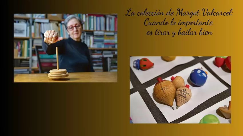Hablar de una cosa aparentemente tan simple como es una peonza puede convertirse en algo lleno de sorpresas y curiosidades. Al menos cuando es Margot Valcarce, coleccionista de peonzas, quien nos descubre los misterios de sus hermosas piezas. Margot dice que a esta colección la llevaron sus orígenes de niña rural en Valdeorras en un tiempo en el que los niños muchas veces se hacían sus propios juguetes. Convertida ya en pedagoga y profesora en Ciencias de la Educación en la Universidad de Santiago, su vocación y profesión de pedagoga la llevo a interesarse en los juegos educativos y participativos en los que la mecánica está ausente y el niño tiene que echar mano de sus habilidades manuales y su imaginación.
