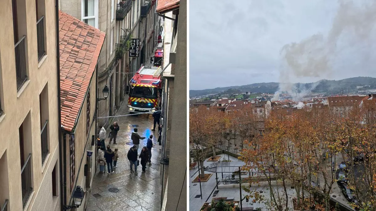 Un incendio urbano sorprendió a los vecinos de Ourense este mediodía. Sucedió en la calle San Miguel, en el Casco Vello, alrededor de las 14:15 horas, cuando una gran columna de humó se podía presenciar desde los alrededores.