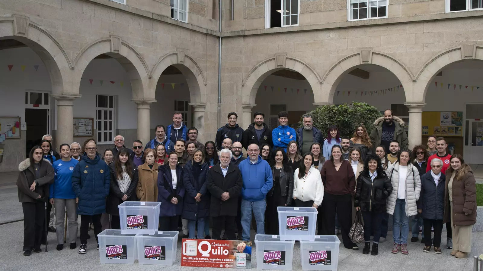 La Asociación Xuvenil Amencer abrió en el aula magna del colegio Salesianos una nueva edición de la iniciativa solidaria Operación Quilo. El acto reunió a representantes del ámbito político, deportivo, religioso y educativo de Ourense, que quisieron mostrar su apoyo a este proyecto, ya con treinta y nueve ediciones, y cuyo objetivo es ofrecer ayuda alimentaria y económica a las familias con menos recursos de la ciudad.
