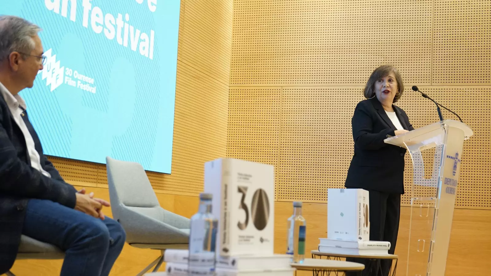 En el acto, también estuvieron presentes el director del OUFF, Óscar Doviso, y el presidente de la Diputación de Ourense, Luis Menor. Ambos aprovecharon la ocasión apra reivindicar con firmeza la importancia de seguir invirtiendo en cultura. “Nunca é un gasto, senón un símbolo de identidade, cohesión e futuro”, apuntó Doviso respaldado por Menor, quien añadió que el éxito de la última edición sirve para “tapar a boca aos detractores que din que tiramos os cartos”.