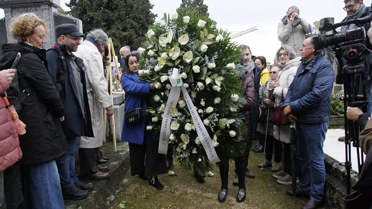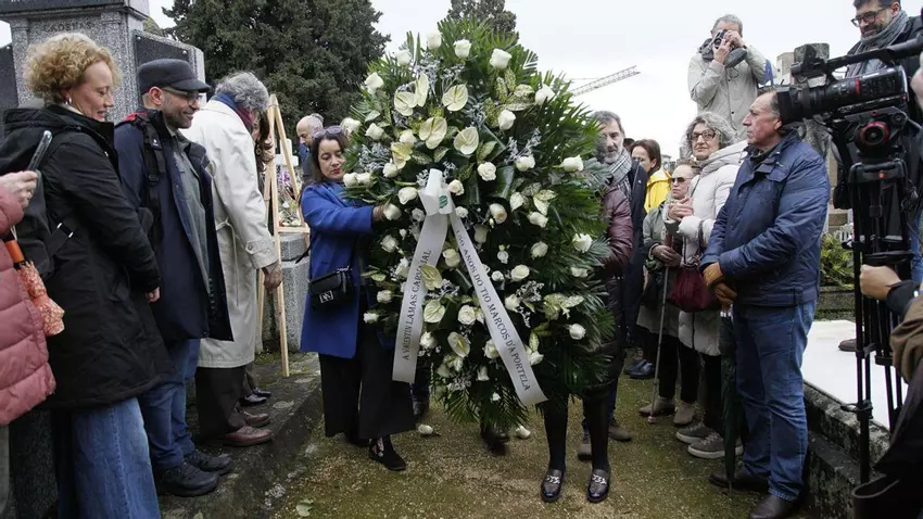 O ciclo de homenaxes a “O Tío Marcos d’a Portela”, e por consecuencia á figura de Valentín Lamas Carvajal, continuou onte cun acto que arrancou no cemiterio de San Francisco, onde repousan os restos do escritor e xornalista, e que continuou cun roteiro polas rúas máis representativas da vida e obra do autor.