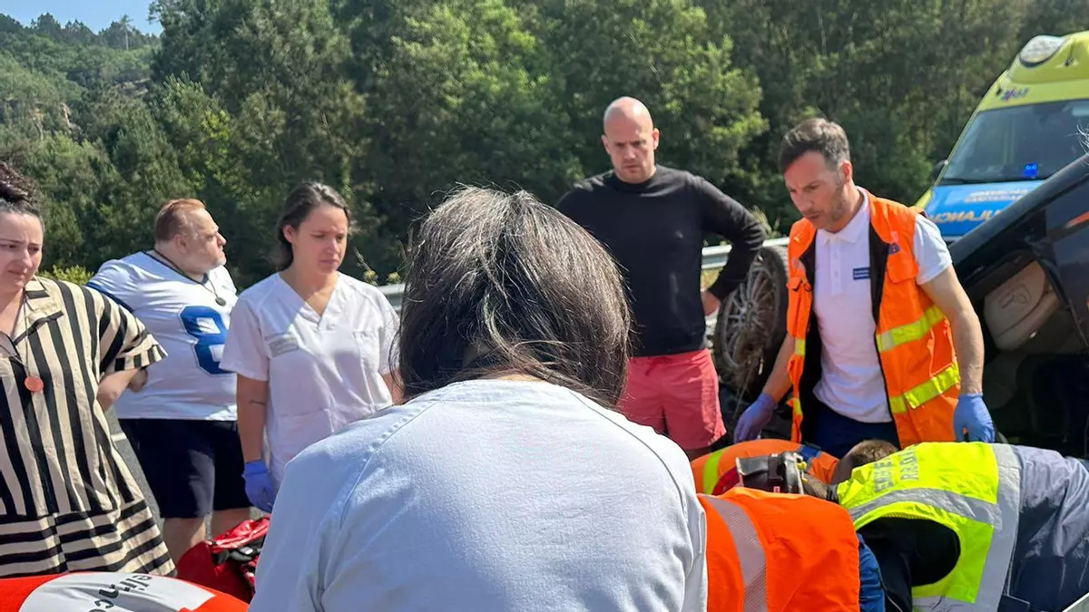 El coche invadió el sentido contrario y acabó volcado sobre la mediana a la altura de Sanín, en sentido Ourense.