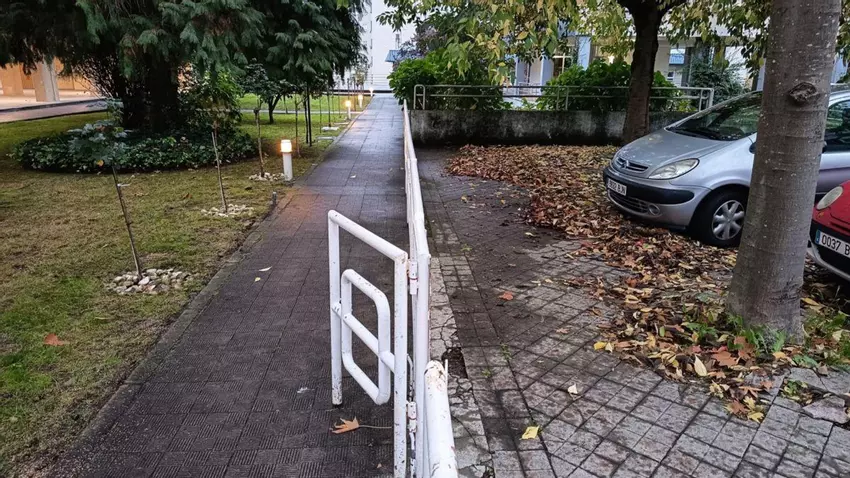 ¿Sabe usted que esta valla en As Lagoas separa de forma diáfana la diligencia de la negligencia? ¿Que a la izquierda está la diligencia: la de los vecinos que de forma voluntaria limpian de hojas el camino para dejarlo limpio para el tránsito de paseantes? ¿Que al otro lado está la negligencia, en ese espacio público, competencia de un Concello que parece tomarse su tiempo para retirar la hojarasca de las aceras?