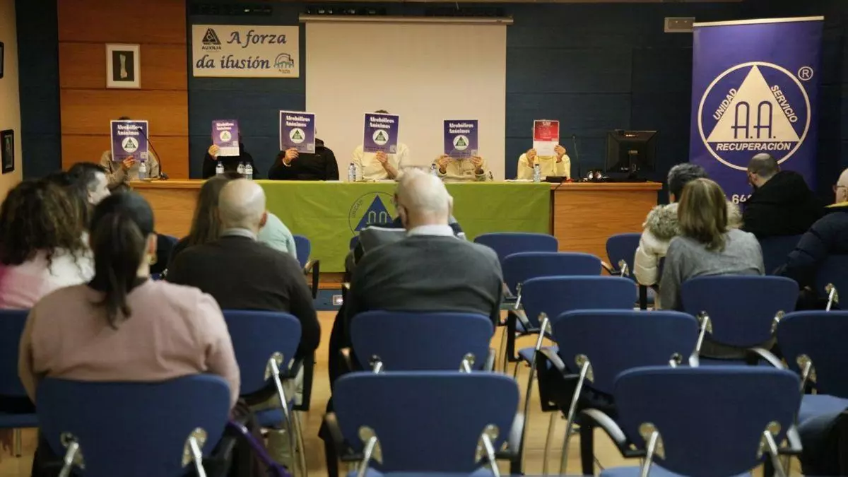 Unidad, servicio y recuperación son las palabras sobre un triángulo equilátero dentro de un círculo; ese es el logotipo que identifica al grupo de Alcohólicos Anónimos (A.A.) en Ourense. Cubriendo sus rostros para la fotografía, seis personas —tres hombres y tres mujeres— en la sala de actos de la Asociación Aixiña, en una mesa convertida en espacio de confesiones, narraron sus experiencias como supervivientes del naufragio en un mar etílico, debido a tempestades personales que convergen en un tema común: enfermedad y recuperación. Nuevamente descubiertos al público, quienes desde el anonimato buscan realizar un trabajo más cercano y efectivo, contaron detalladamente su descenso físico-emocional y posterior escalada tras hallar el asidero de una asociación que tiene como claves de funcionamiento el acceso libre, gratuito y confidencial.