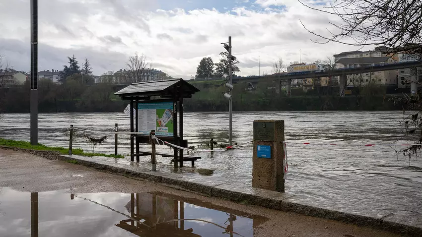 Esto provocará un repunte generalizado de los cauces. En la ciudad de Ourense, el Miño circula actualmente a 1.600 metros cúbicos por segundo (m³/s), pero se espera que a última hora de hoy alcance los 2.000 m³/s, llegando a su punta el jueves por la mañana. Esta tarde podría sobrepasar ya el nivel de siete metros, ya que a esta hora marca 6,72.