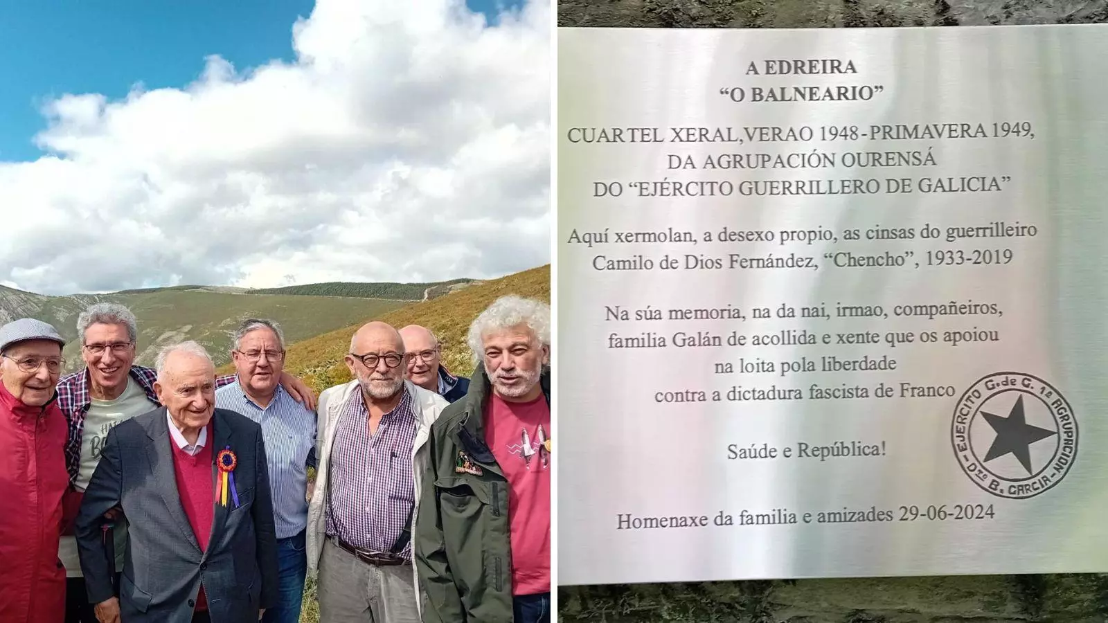 El acto ha tenido lugar ante la placa conmemorativa de junio de 2024, que marca el sitio exacto que sirvió de Cuartel General de la Agrupación de Ourense del Ejército Guerrillero de Galicia entre el verano de 1948 y la primavera de 1949.