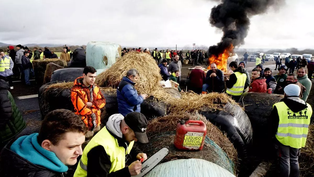 Aún con el manto nocturno cubriéndolos, los agricultores y ganaderos que estos días protestan en la provincia de Ourense lograron bloquear en ambos sentidos la A-52 a su paso por Abavides, en el kilómetro 188, la última salida —o entrada— hasta el 193, situado en el polígono industrial de Xinzo de Limia.