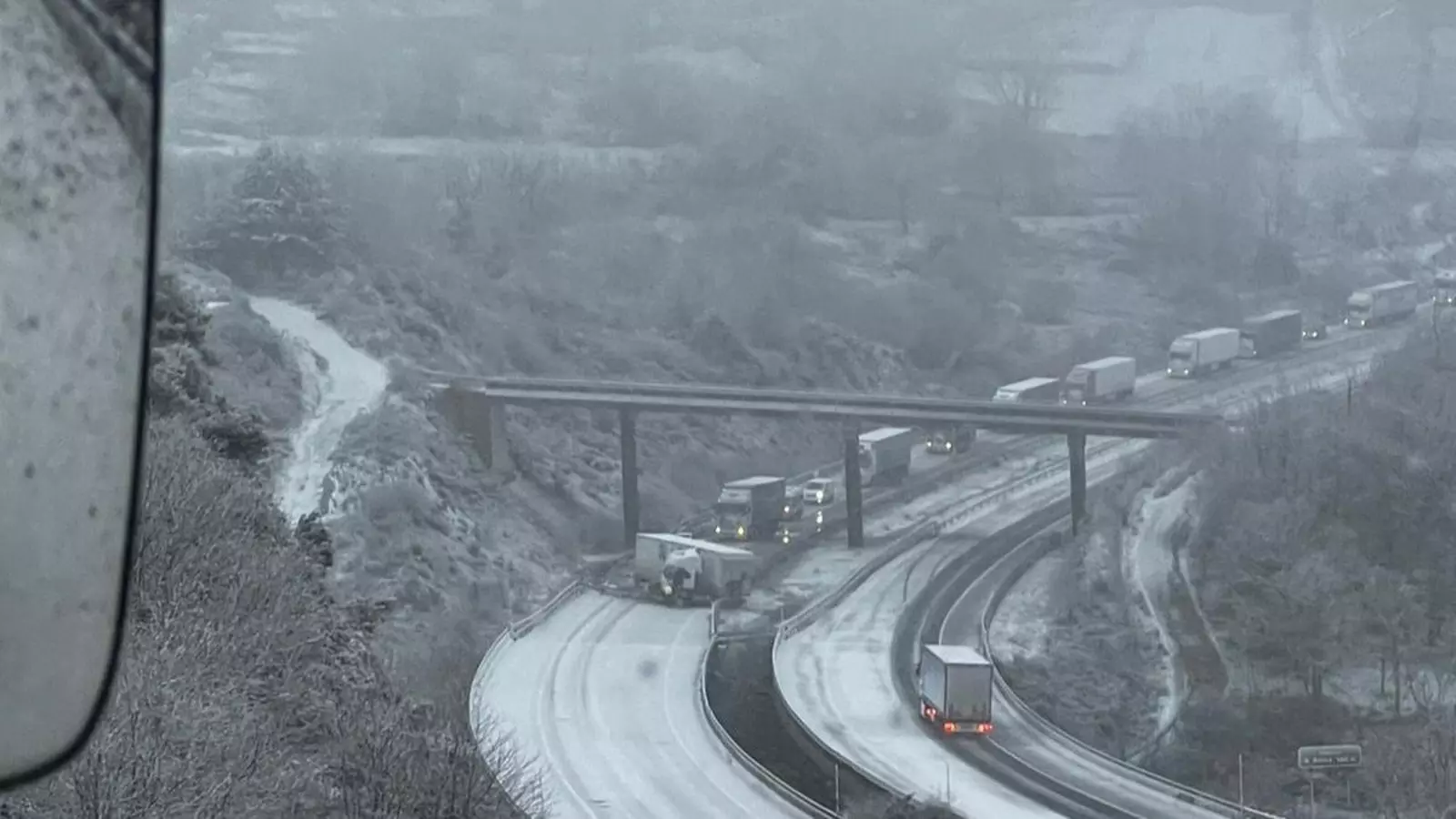 Las intensas lluvias y la nieve siguen condicionado a la provincia de Ourense tras sufrir borrascas encadenadas y a la espera de la llegada de Leonardo este miércoles. Las condiciones meteorológicas adversas afectan a la circulación, un claro ejemplo es la salida de vía de un camión en la A-52 debido a la nieve acumulada en esta carretera. Este accidente de tráfico está provocando largas retenciones en dirección a Vigo.