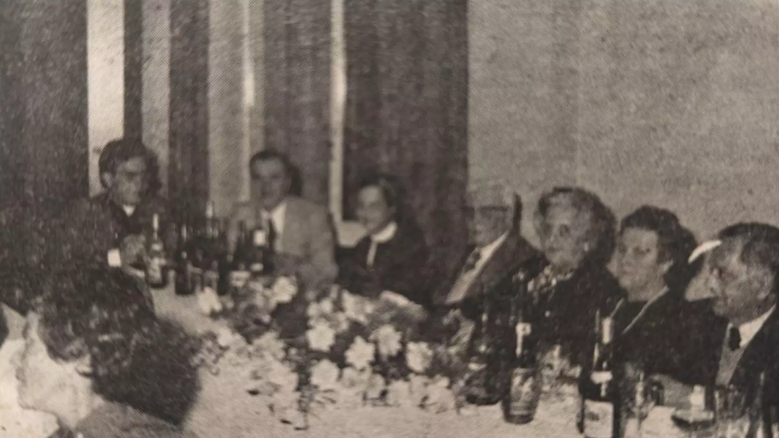 Doña Isabel y doña Emérita estaban acompañadas por sus esposos. A los postres les fue entregada a cada una una bandeja de plata como recuerdo del director y profesores del colegio “Virgen de Covadonga” y un ramo de flores.