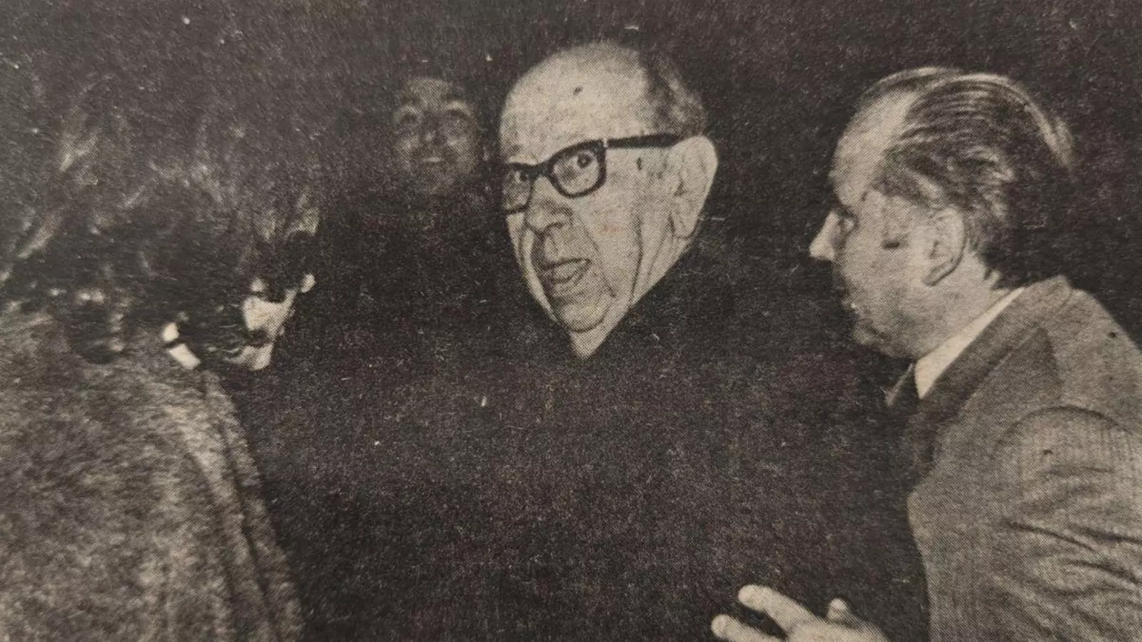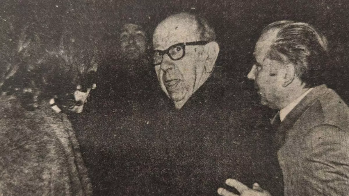 -(1) El exministro, político y abogado José María Gil Robles llega a Orense para defender al ex director de la sucursal de la Caja de Ahorros en Avión señor Souto González, en prisión provisional por una presunta malversación de fondos.