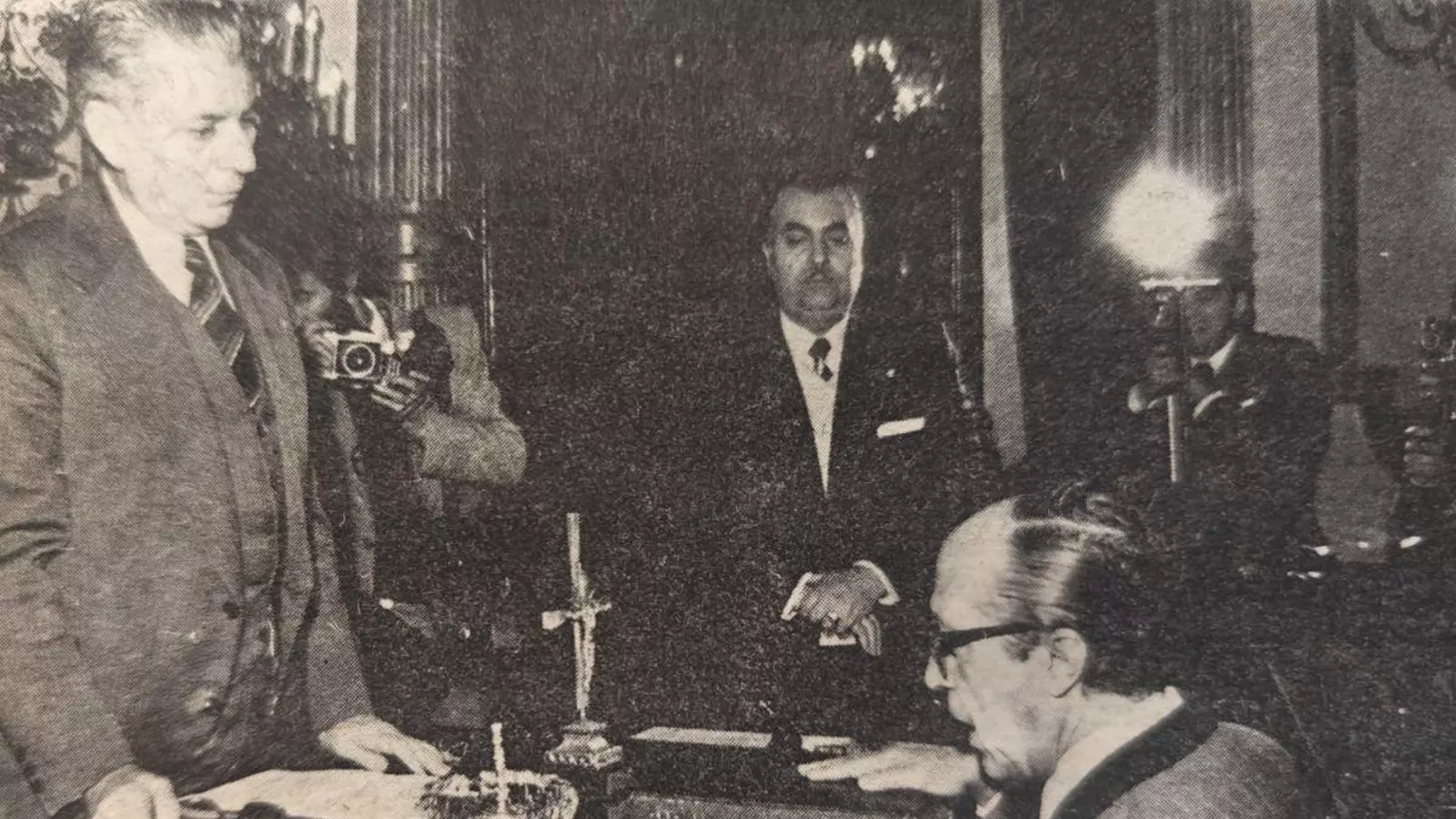 -(2) Don Miguel Riestra París toma posesión de la alcaldía de Orense, renovando su actual mandato y convirtiéndose en el primer alcalde electo en la ciudad (por los concejales) desde 1936, fecha desde la cual los alcaldes eran designados por el ministro de la Gobernación. El señor Riestra se convierte así en el último alcalde de Orense designado por el régimen de Franco y el primer alcalde elegido en la continuidad.