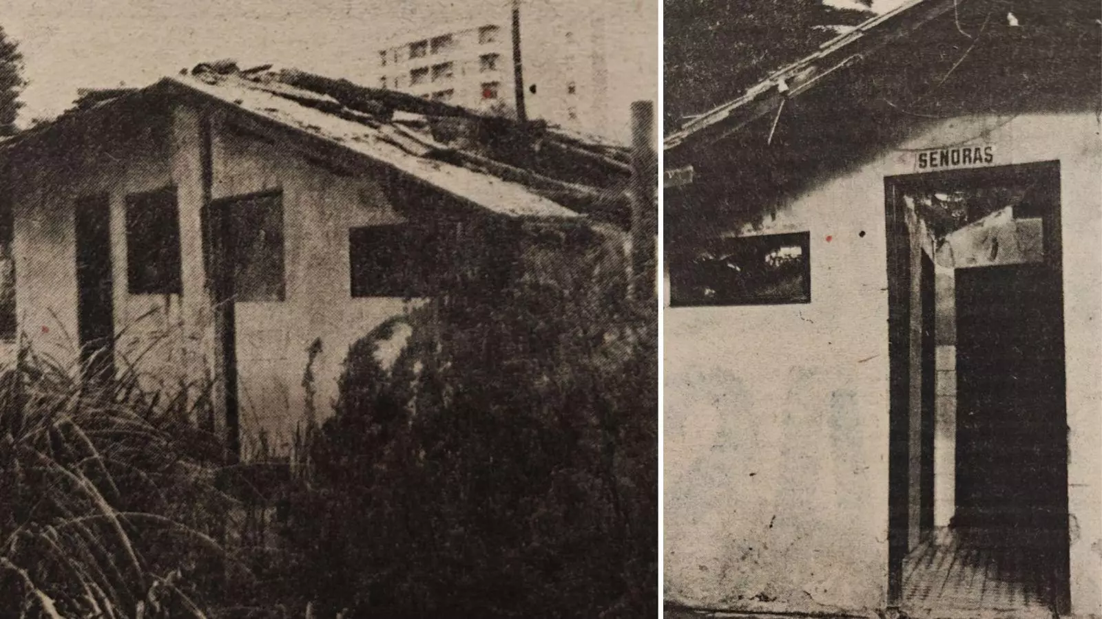 En el mismo estado que recién incendiados, continúa la famosa casilla de los servicios públicos de Jardín de Posío. No se ha hecho la menor reparación. Así han quedado desde aquel incendio de, que recordemos, unos cinco o seis meses del pasado año de 1975.