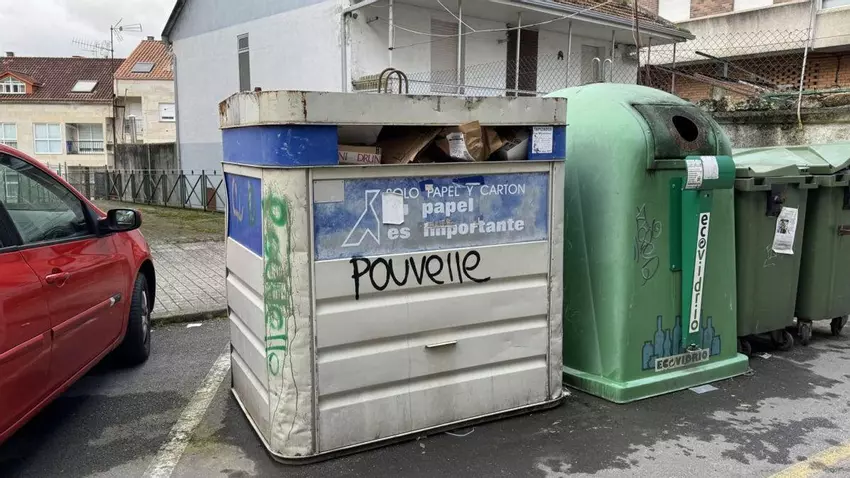 ¿Sabe usted que además de emborronar paredes, también la toman con el mobiliario público? ¿Que en Allariz uno de estos lumbreras ha pintarrajeado un contenedor con la palabra francesa “pouvelle”? ¿Sabe usted que además de carecer de arte, desconoce que significa “basura” y la ha escrito en un container de reciclaje de papel y cartón?