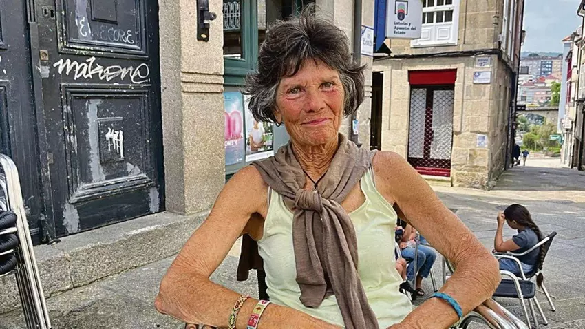 Los souvenirs que atesora de sus múltiples experiencias dirección Compostela no son de índole material, aunque lleve una simpática piña que le regalaron en Castilla colgando de su macuto. “Por lo visto es un amuleto de la hospitalidad, de que todos estamos unidos”, explica. Nora Sullivan es la más jovial de un grupo de tres peregrinos a sus setenta y cuatro años. El sol tan pronto pone edad a través de las arrugas, como las quita, por el resplandor que aporta. “¡Qué va!, es todo genética”, opina la peregrina que aún muy en lo interior tiene los pies puestos en el mundo.