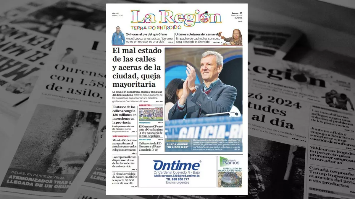 La portada de La Región de este lunes, 23 de febrero