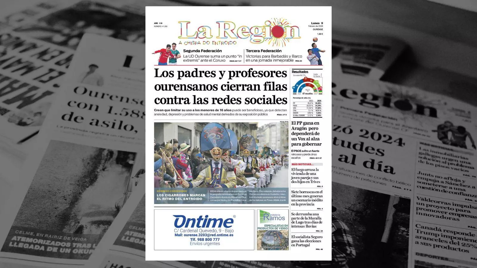 La portada de La Región de este lunes, 9 de febrero
