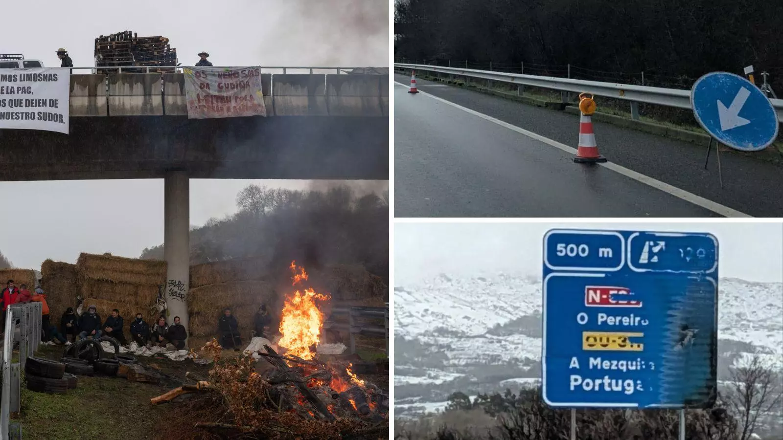 Tres días de tractoradas en Xinzo y 72 horas de caos en la A-52: cortes por obras, nieve y baches convierten la conexión Ourense-Zamora en "una ratonera"