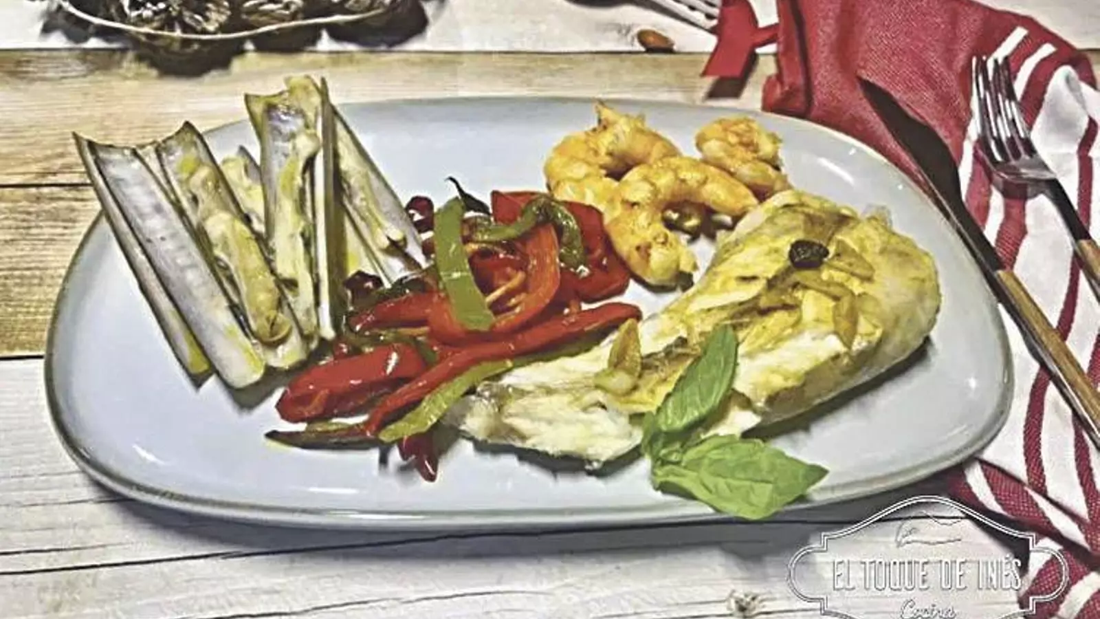 Receta | Rape con verduras salteadas, navajas y langostinos