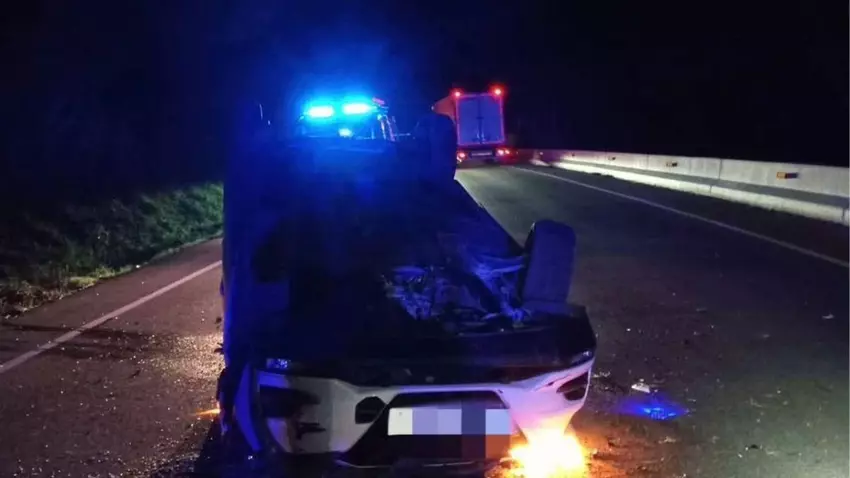 Según informaron los servicios de emergencia, el conductor, afectado por la somnolencia, perdió el control de su vehículo y terminó chocando contra un muro. Tras ello, el vehículo quedó volcado en el carril.