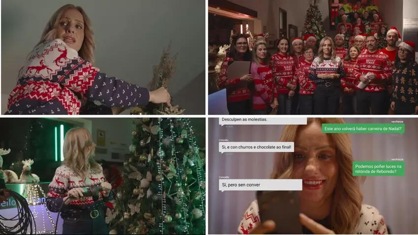 El tono distendido continúa cuando, al encender las luces del árbol, solo funciona una parte. “Anda! Se eso funciona á metade! Somos un concello sostible, 50% de consumo”, comenta en el vídeo. A conticuación empieza a comer turrón y le dicen que todavía no es la hora de comerlo, a lo que ella responde "Turrón de calidade", haciendo referencia a Galicia Calidade.