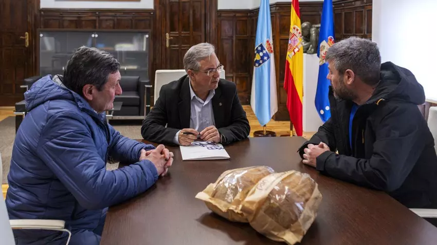El presidente de la Diputación de Ourense, Luis Menor, mantuvo una reunión de trabajo con el nuevo presidente del Consejo Regulador de la IGP Pan de Cea, Juan Luis Calviño, y con el teniente de alcalde del Ayuntamiento de San Cristovo de Cea, José da Lama, en un encuentro en el que se abordó la situación actual de este producto emblemático de la provincia y las líneas de colaboración institucional para seguir impulsando su promoción y puesta en valor.