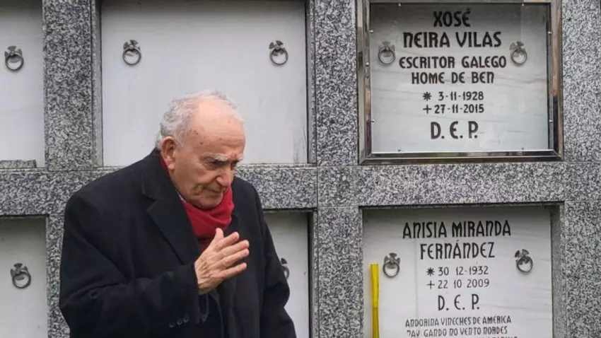 Por máis que non sexa habitual neste espazo, o feito de que andara poñendo o pé nos derradeiros chanzos para escalar ó podio dos cen anos dáme licenza para fender a tradición e dedicarlle esta páxina ó xa ausente profesor que eu nunca tiven, pero si ó confidente co que compartín conversas arredor de dous dos seus máis brillantes faros guía e por un dos cales nos fixo militar no “PCE”. É dicir, a aquel mozo ateo que viaxou a Vilanova para “coñecer” á virxe do Cristal e que andou polas rúas currosianas á busca do infinitivo conxugado.