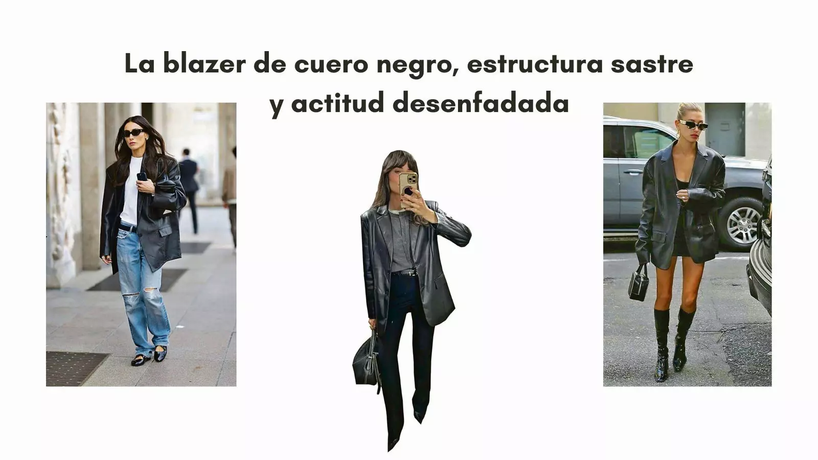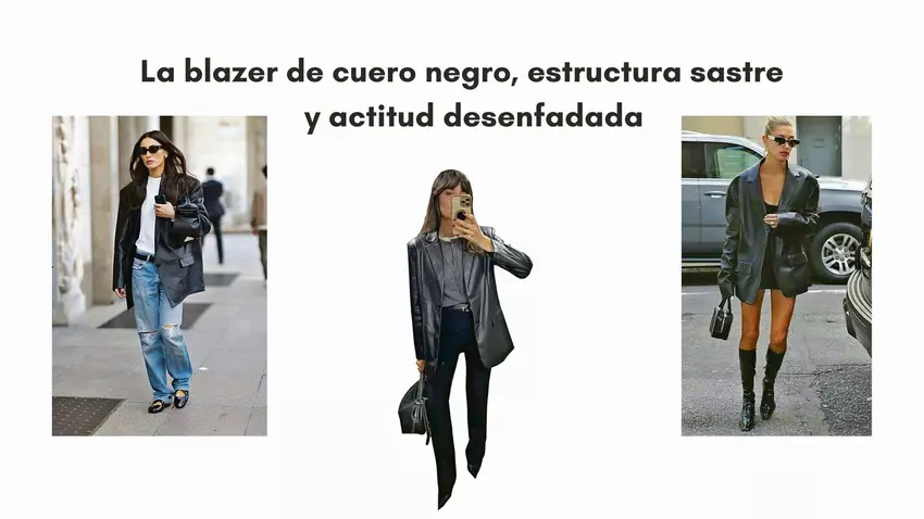 También puedes probar el total black con pantalones de cuero o pitillo oscuro y botines con tacón, aportando una silueta moderna y definida. Incluso combinada con accesorios sobrios, la blazer sigue siendo el centro de atención sin eclipsar el conjunto.