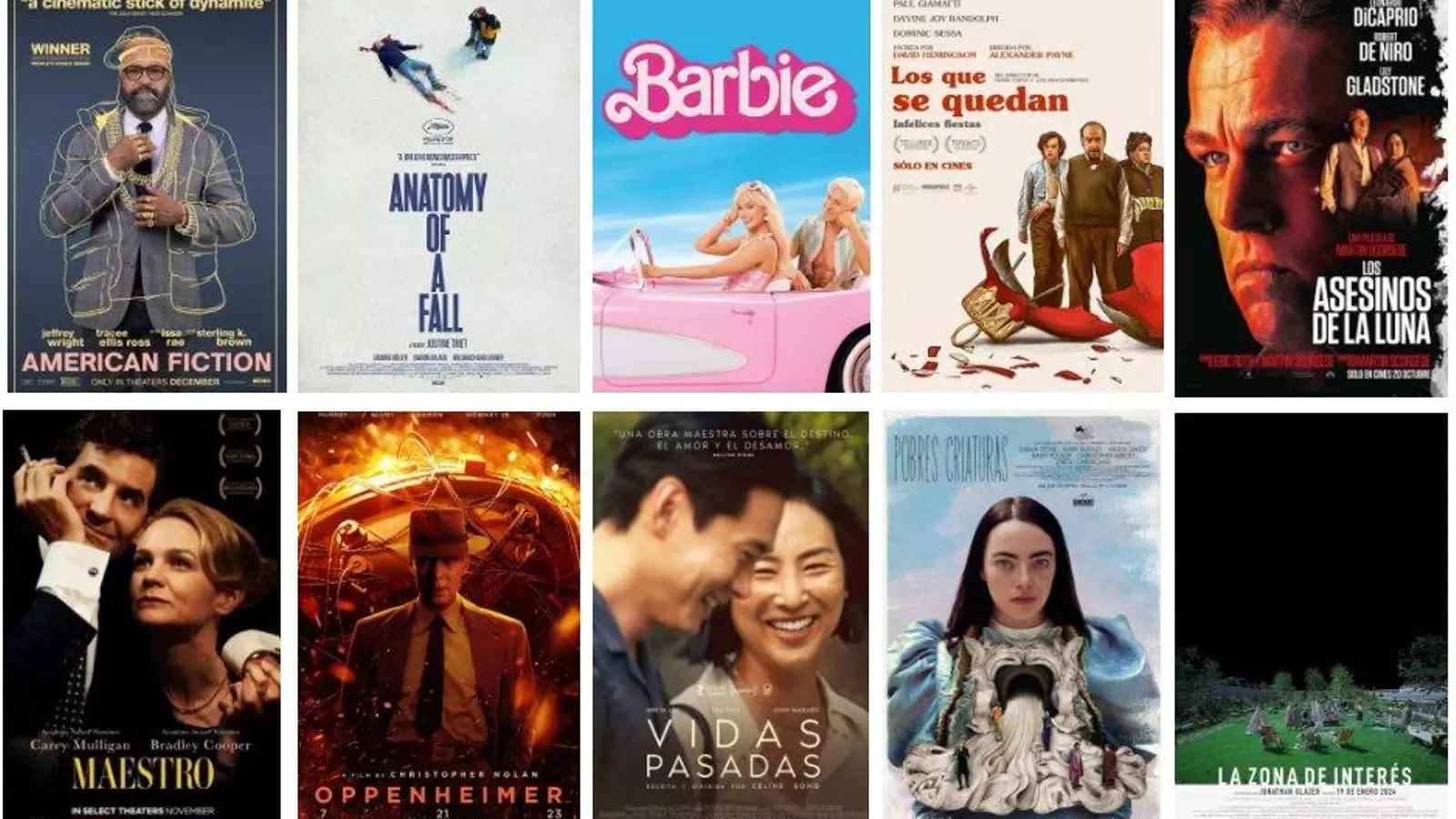 Este año las películas nominadas al premio son: 'American Fiction', 'Anatomía de una caída', 'Barbie', 'Los que se quedan', 'Los asesinos de la luna', 'Maestro', 'Oppenheimer', 'Vidas pasadas', 'Pobres criaturas' y 'La zona de interés'