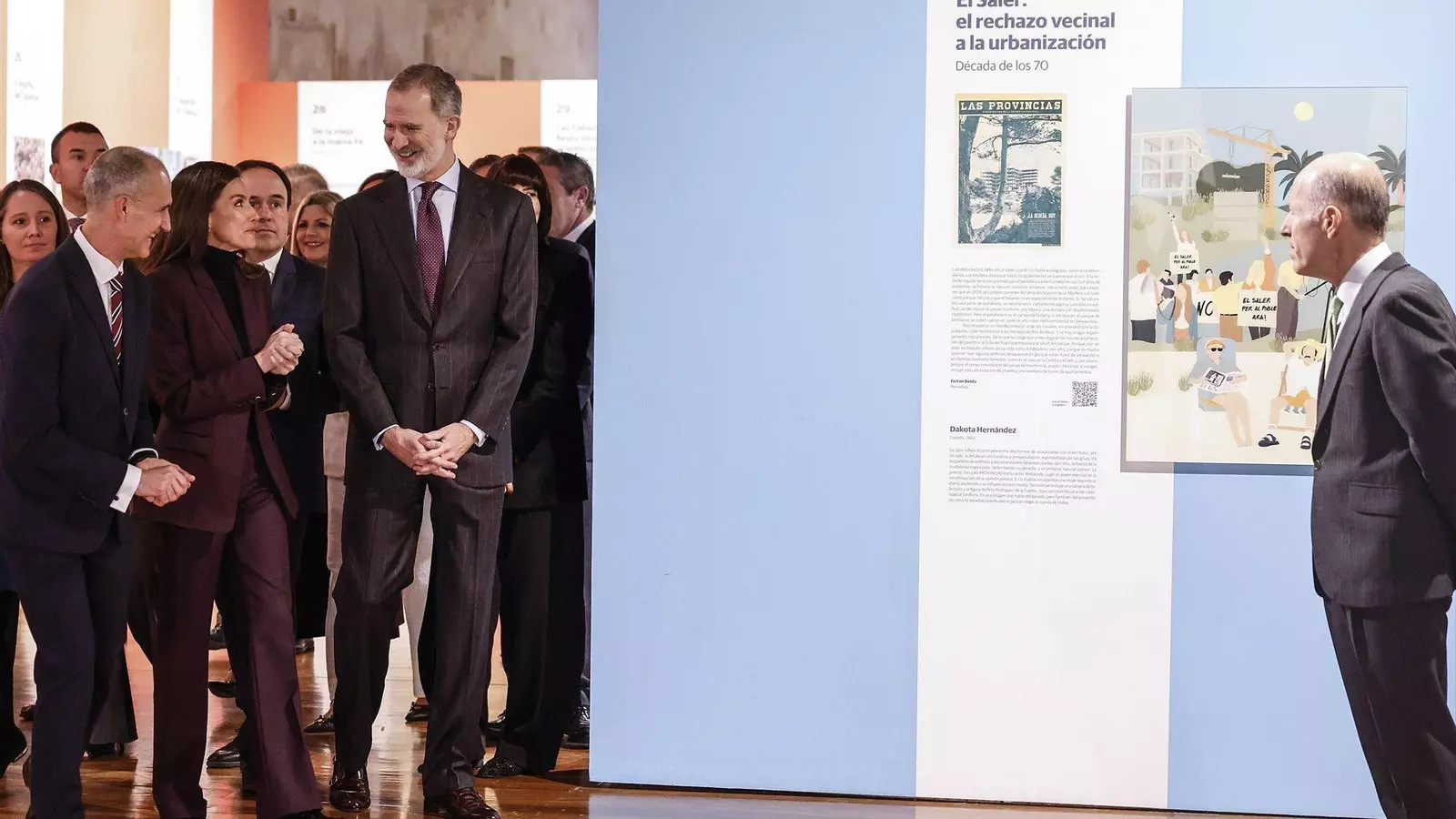 Los Reyes de España, Felipe VI y doña Letizia, recorren en el Centre del Carme la muestra Transformación de Valencia por el 160 aniversario de Las Provincias, con especial atención a las obras sobre la barrancada y el papel del periodismo local