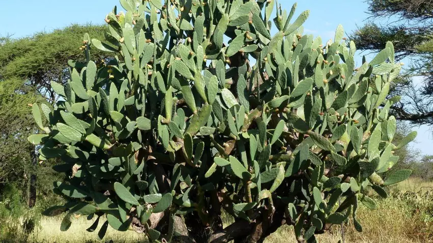 Su tallo, robusto y erecto, presenta unas secciones gruesas, oblongas o elípticas, aplanadas, carnosas, suculentas y de color verde azulado, llamadas “palas”. En ellas podemos encontrar unas estructuras circulares que contienen numerosas espinas. Las flores de colores llamativos que oscilan entre el amarillo, el naranja, el rojo y el púrpura, son sésiles y solitarias, y brotan en los bordes de las palas. Florecen a finales de la primavera. Sus frutos, llamados higos chumbos, son como bayas carnosas, inicialmente verdes y anaranjado rojizas al madurar, con una profunda depresión en el ápice y, también, cubierta de espinas. Su pulpa contiene numerosas semillas. Puede reproducirse a través de ellas, las cuales pueden permanecer en letargo durante mucho tiempo, o de modo vegetativo, en este caso a través de sus palas que al caer en tierra enraízan con facilidad. Es resistente a la sequía. Crece en terrenos removidos y bordes de caminos, terrenos secos y bien drenados.