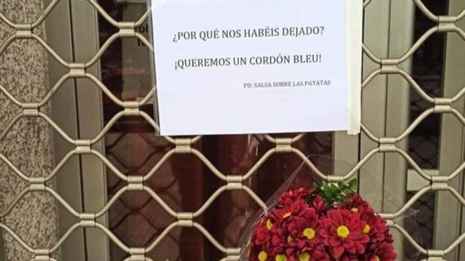 Semanas después de que el restaurante La Romántica cerrara sus puertas, muchos ourensanos siguen deseando la reapertura de este mítico establecimiento de la ciudad. Este fin de semana, con motivo del día de los Fieles Difuntos, algún ciudadano se acordó de La Romántica y decidió dejar un ramo de flores a las puertas del local. Junto a las flores, apareció un mensaje anónimo en el que pedían su reapertura: "¿Por qué nos habéis dejado? ¡Queremos un cordón bleu!".