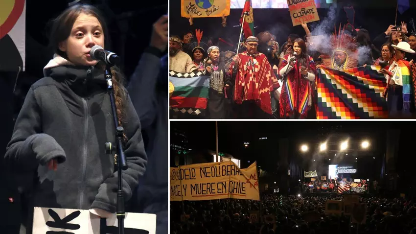 Los organizadores de la marcha han decidido dar protagonismo a los indígenas y participantes de Chile al ser el país organizador de la COP25, que se trasladó a Madrid por el conflicto social en el país sudamericano. Ellos, junto a colectivos procedentes del continente americano, forman el primer bloque de la manifestación que parte desde Atocha encabezada por una pancarta con el lema "El mundo despertó ante la emergencia climática".