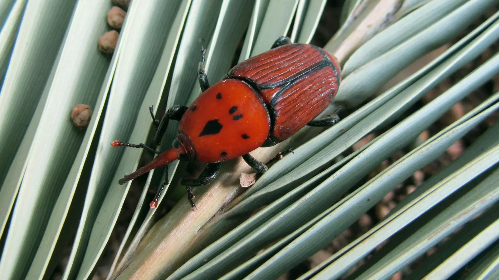 género Phoenix, pero, a día de hoy, son pocas las que quedan y menos aun las que están perfectamente sanas. ¿El culpable? El picudo rojo, Rhynchophorus ferrugineus, una especie de coleóptero de la familia de los gorgojos autóctono de Asia.